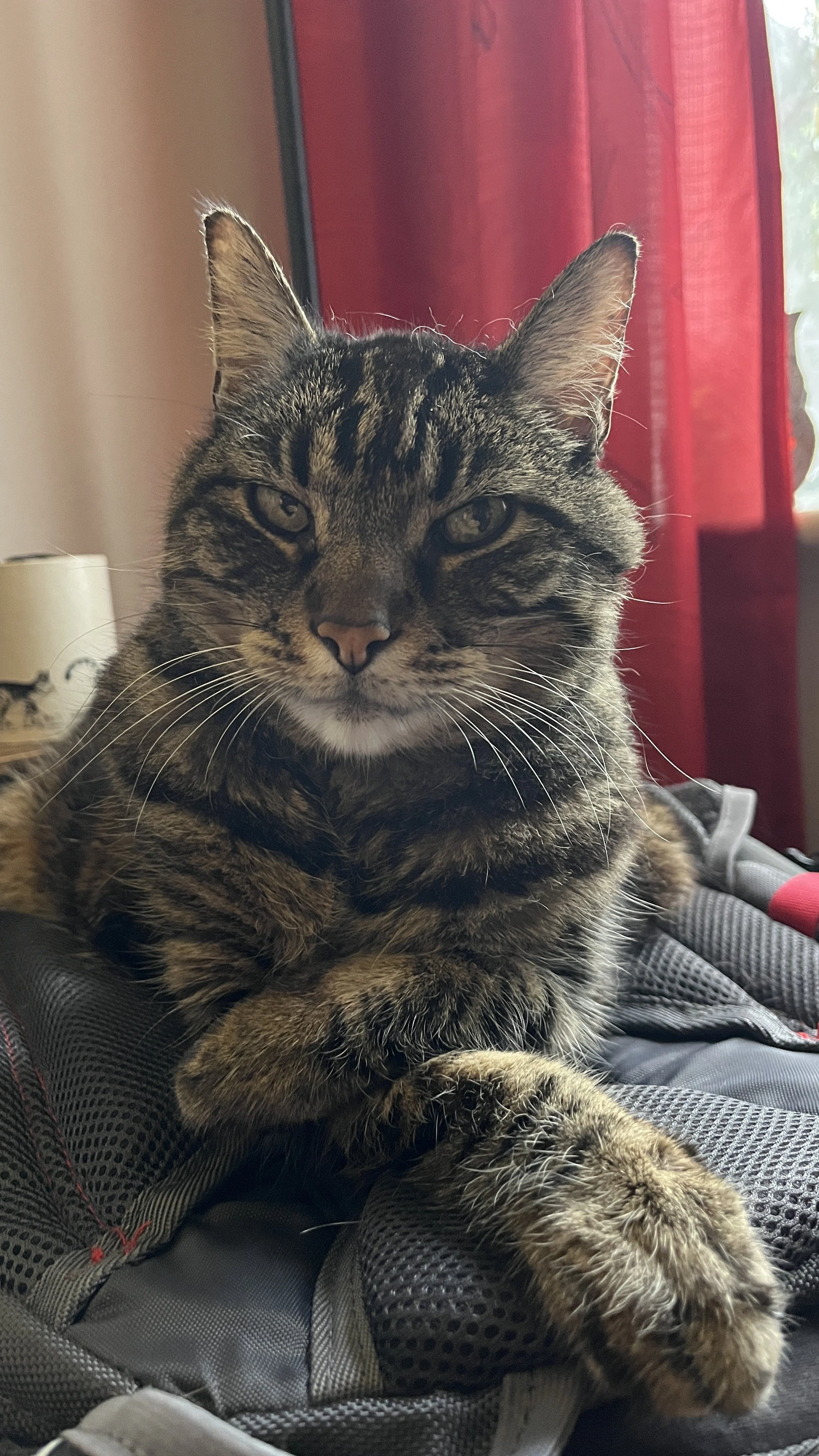 Crumpet has a home, but he is known in his corner of Portland for sneaking through unlocked doors and windows, squeezing through cracks, and surprising people when they get home. He prefers triangle kibble, wants to be everyone’s friend, and is known by many names.